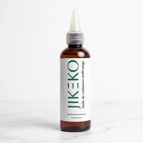Découvrez l’alliance de la nature et de l’efficacité avec l’ Huile de Croissance Multi-Usage de Jikeko. Elle est conçue pour prendre soin de vos cheveux ou de votre barbe. Cette huile combine des huiles végétales nourrissantes, dont l’huile de Dattier du Désert bio et l’huile de Baobab, avec des huiles essentielles pour fortifier les cheveux, favoriser leur pousse et lutter contre les pellicules.